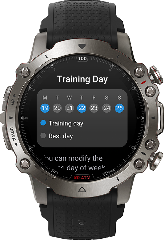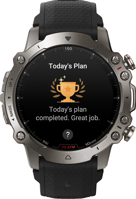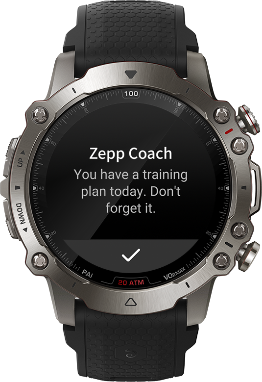 The Zepp CoachTMmonitors your fatigue level, fitness level, and training status, and does its best to help you hit the right balance. If you're in an overtrained state, your scheduled training load may be reduced - or you may even be recommended to take a rest day - to help you avoid risk of injury or exhaustion.